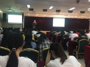 应用外语与国际交流学院于4月12日晚上7:00,在广州校区工业实训中心B903召开了第123届广东进出口贸易商品交易会(简称广交会)商务实习动员大会。出席本次会议的嘉宾有:应用外语与国际交流学院副院长闫卫锋、英语教研室主任的老师以及该院16级商英、外服、商日的同学。